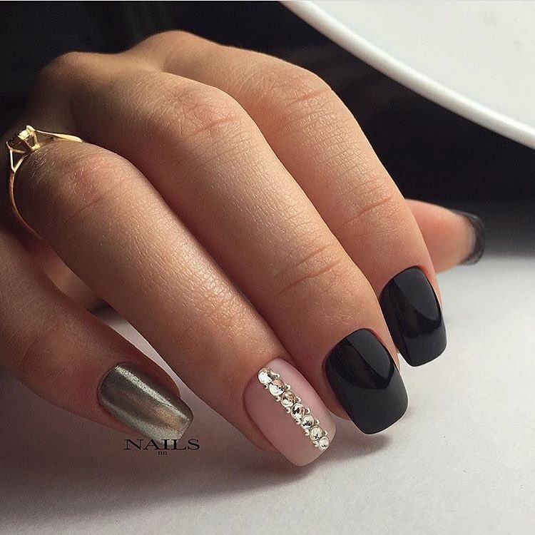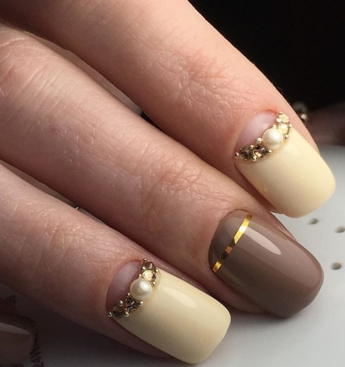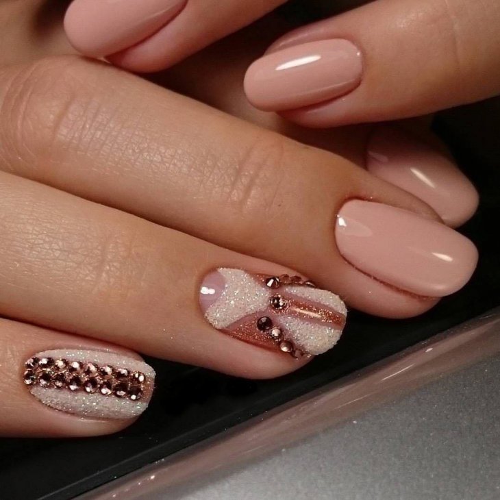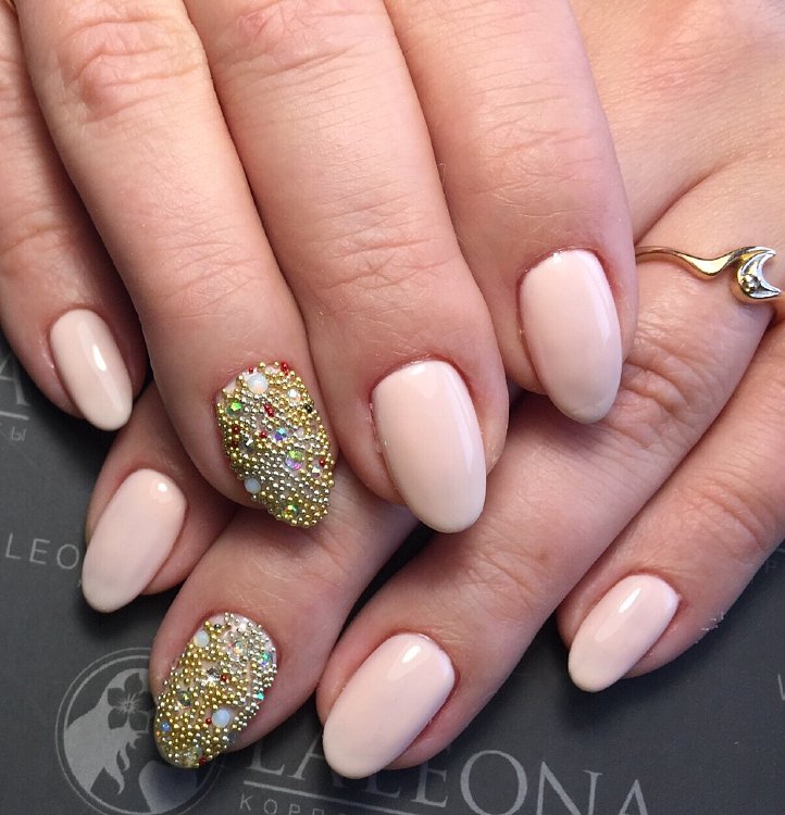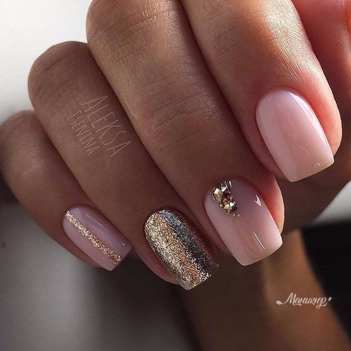 It must be remembered: the more decor and accents, the worse.If you choose the nail decoration option, in which there will be more than a few sparkling elements on the plates, you need to reduce the number of accent nails. However, sometimes in the design can be enough and one nail with a few rhinestones. As a support, you can rely on a golden, silver gel, because it will look more harmonious. Silver or gold can cover the adjacent nail accent.