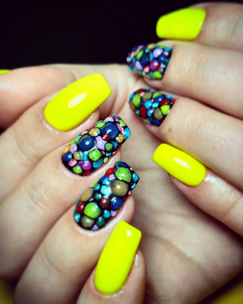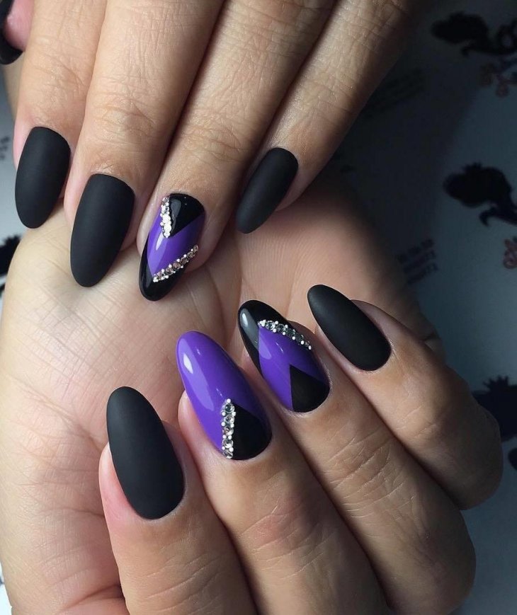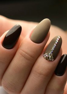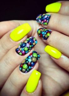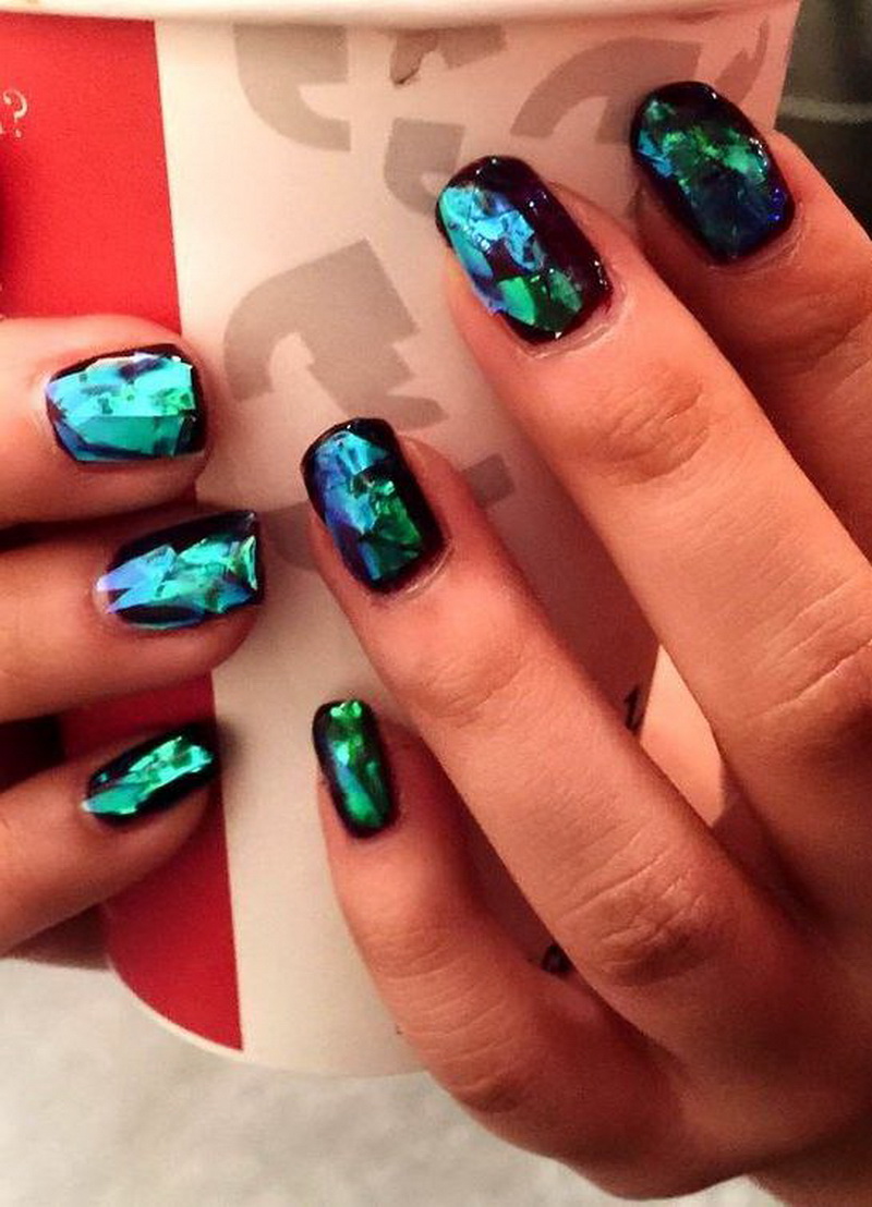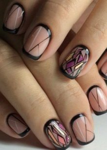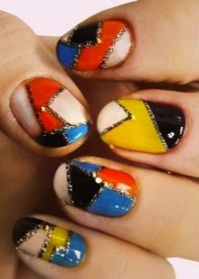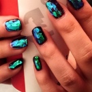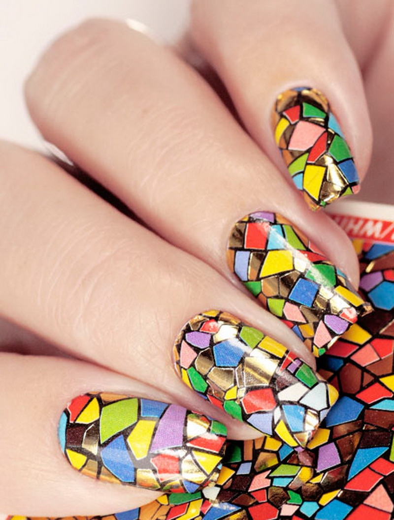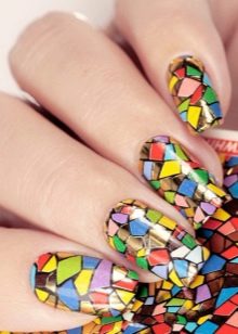Mosaic on the nails involves the use of several varnishes. Drawing is done on a dark background, so it looks spectacular. Mosaic is a small chaotic shapes located on the nail. This design is suitable for one or two nails, otherwise you can quickly get tired of it.