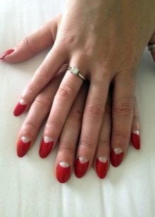 Lunar manicure, despite its simplicity, is the key to sexuality and femininity. There are several options for underlining holes on the nails. Primary color can be dim, pastel or colorless instead of colored lacquer is used. The wells, in turn, stand out in a contrasting color. It is not necessary to draw arcs on each nail. Manicure looks spectacular, where one or two nails are highlighted. A variant of the moon manicure is the selection along with the holes of the regrown part of the nail. You can decorate as one nail on the hand, and all five.