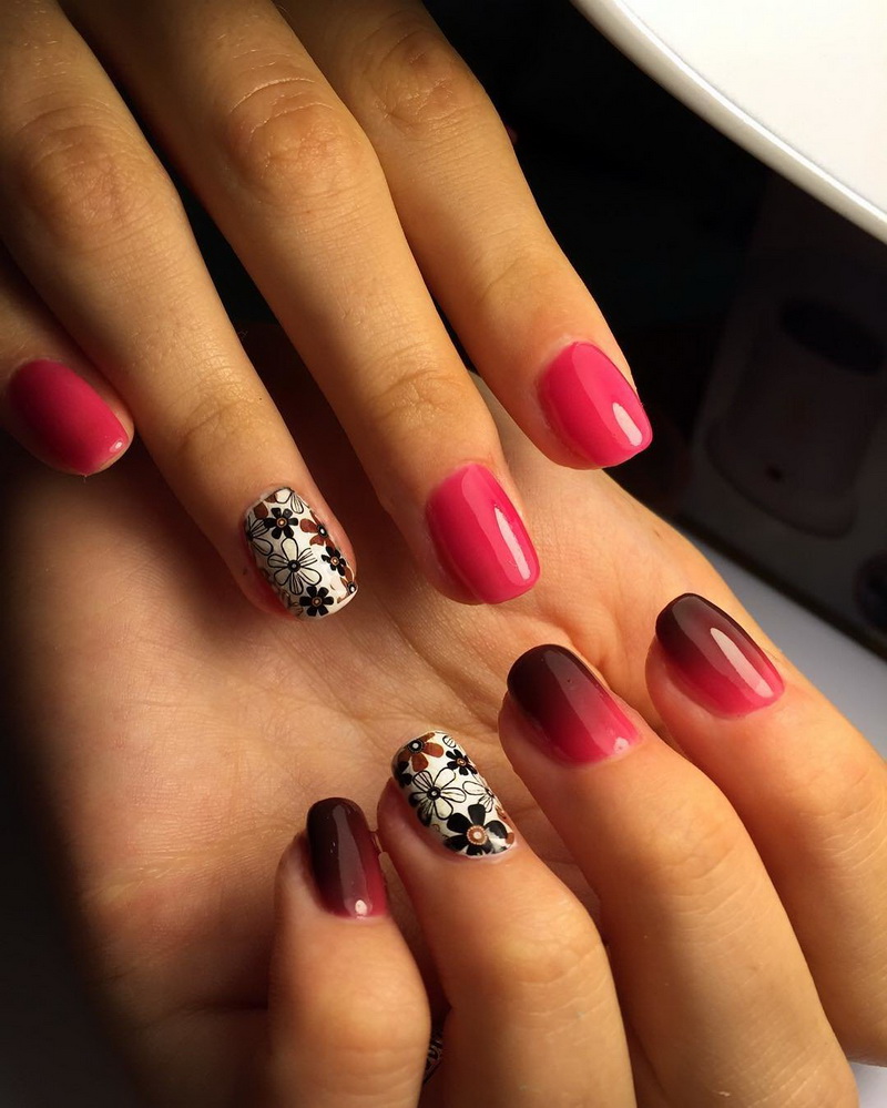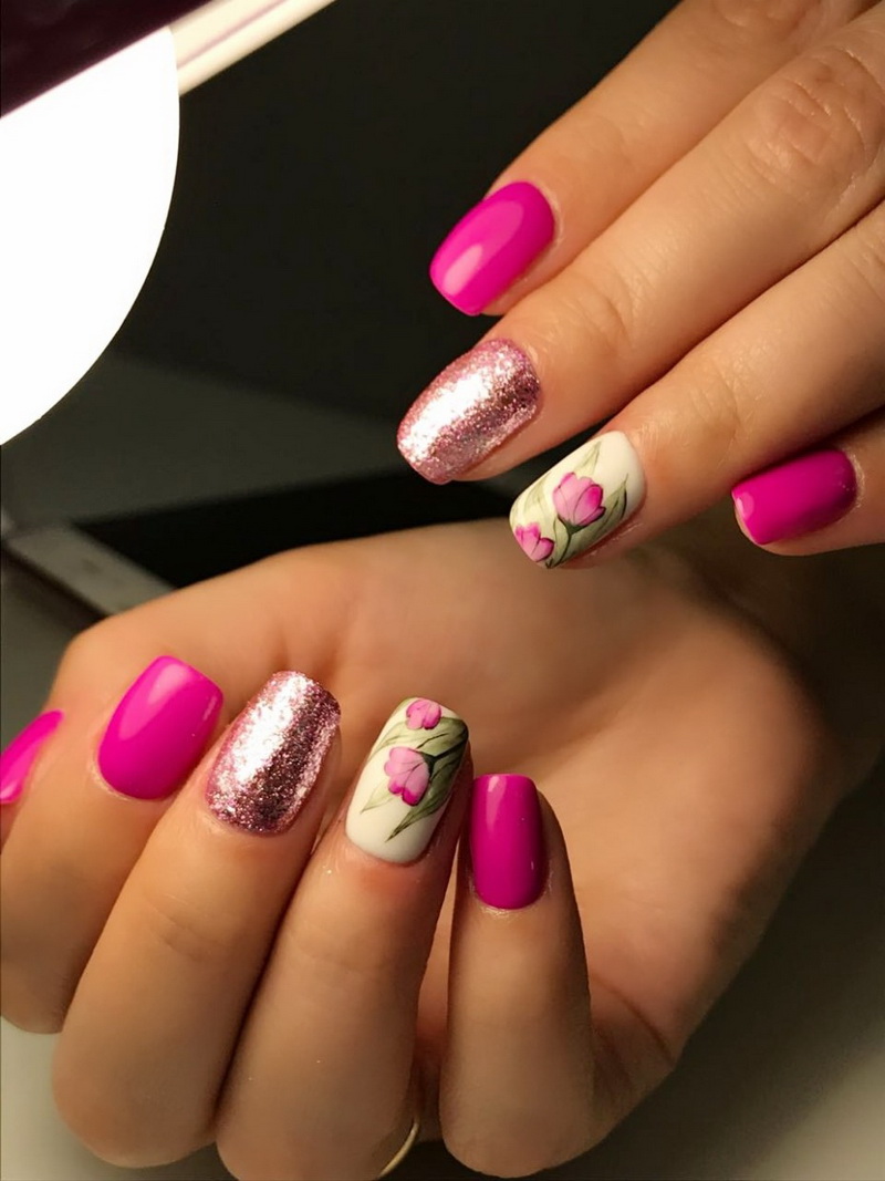 Flowers are always in trend. This is the embodiment of femininity and romance, which can not go out of fashion. Here, the flight of fantasy is completely unlimited: small cute flowers or volumetric roses, whatever design you choose, it will look relevant. The technique of decorating nails with dried flowers is becoming increasingly popular. These are dried tiny flowers that come alive on your nails. Choose such dried flowers that were not painted with artificial colors, as they can ruin the entire manicure.