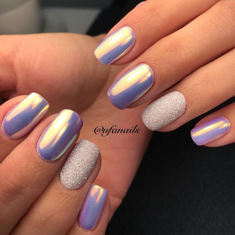 - With rubbing. Although this is a fairly new technology, the manicure does not lose its classical understanding, it looks natural and elegant. Today you can find a large amount of powder. With its help, you can create the effect of chameleon varnish, pearl or mirror coating. Before applying it on the nails, ask the master to demonstrate how this rub will look on the selected shade. Much depends on it.