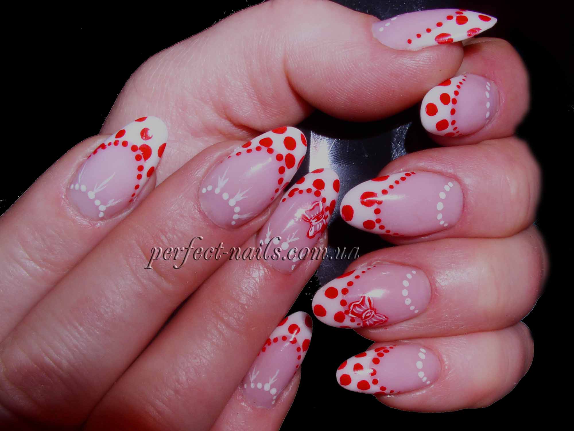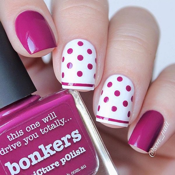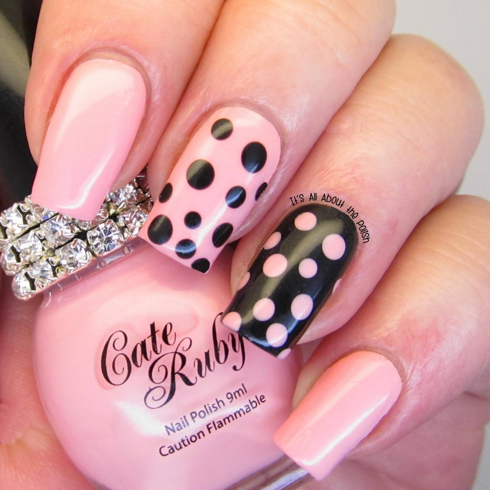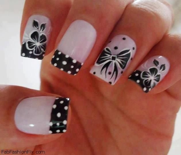 Incredibly popular polka dot manicure with a bow: