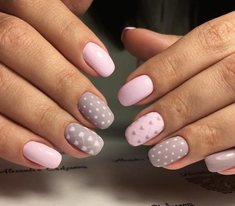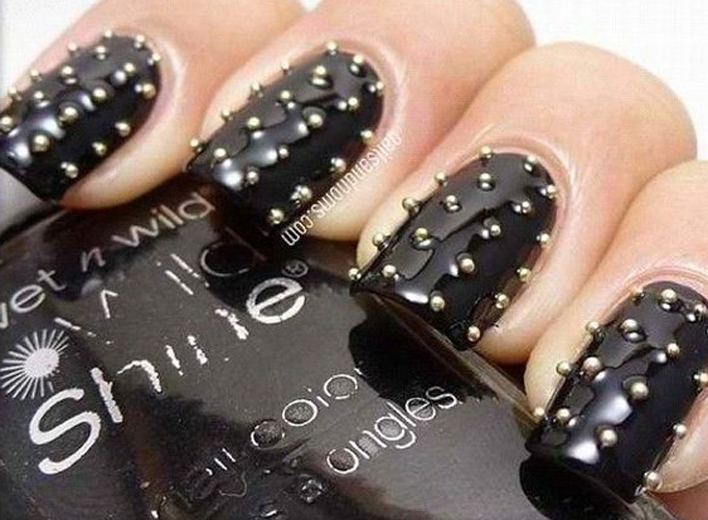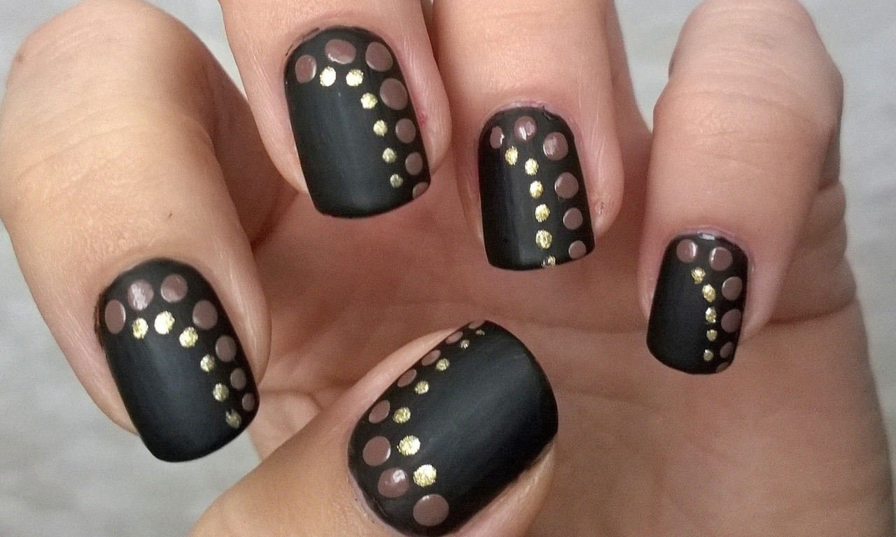 Young ladies are recommended to choose a low-key, exquisite version of a pale pink or beige color. With the help of a special stencil put ordinary peas. You can choose a matte finish. Girls with pea manicure look feminine and elegant.
