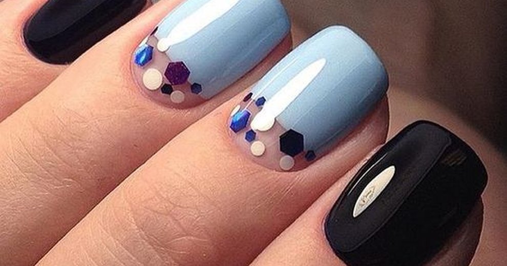 By tradition, black or white peas are placed on a blue, blue, scarlet, burgundy, green, salad nail cover. To decorate the nail surface, it is enough to have two colored lacquers and a transparent base that can fix the print.