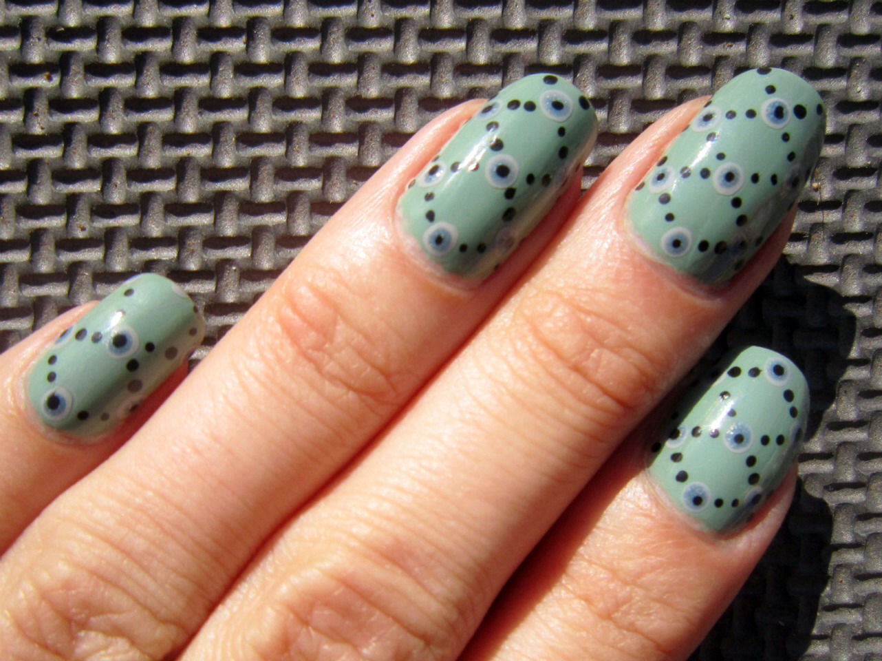 - circles of various size are applied on the nail, and a bow is placed in each well;