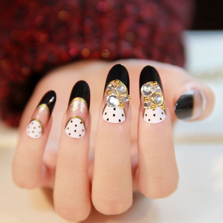 Popular french with the image of circles. Peas are often not placed on all fingers. Sometimes they decorate a strip of jacket.