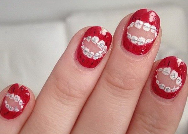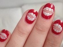 Dental manicure is staggering teeth grin. Sometimes the nail plate is covered with small teeth with roots.