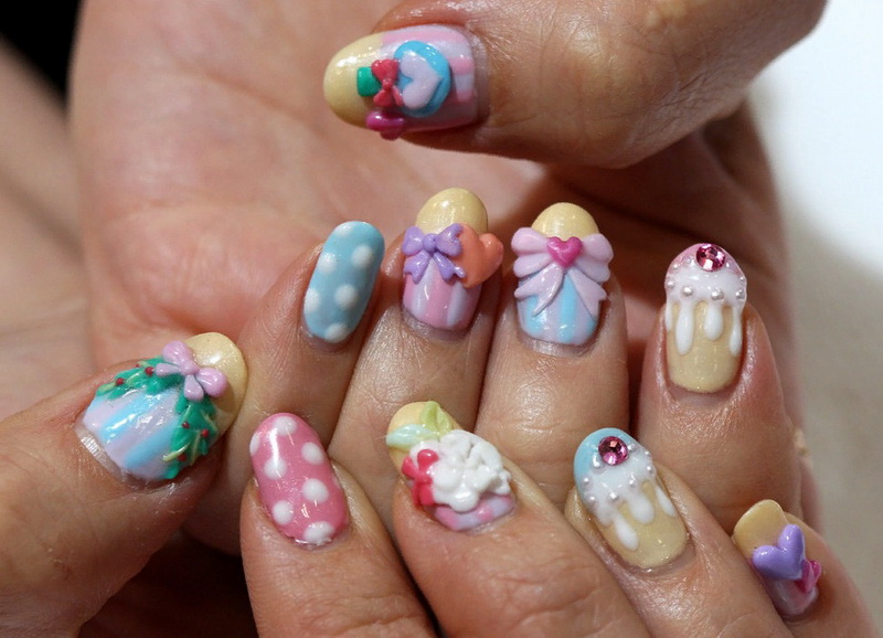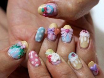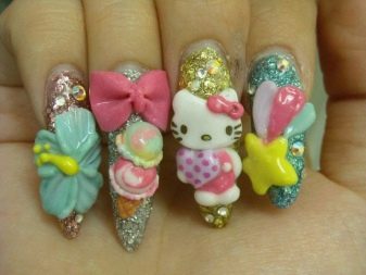 Be careful with sculptural design. He suggests an incredible array of decorative figures on the tender girlish fingers. Sea animals, fish, birds, animals, beautiful flowers, trees, fashioned with great skill, fascinate. For everyday life, sculptural manicure does not fit. It can be done to the graduation party or wedding. In everyday life too exquisite manicure will look tasteless.