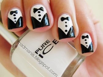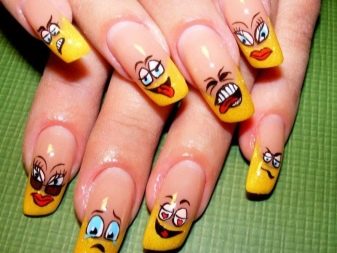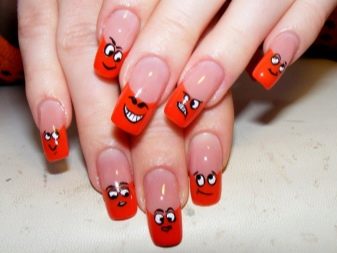 To create a fun manicure with jokes, two types are practiced: applying special stickers and direct drawing.