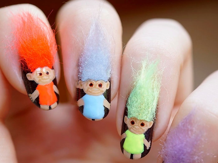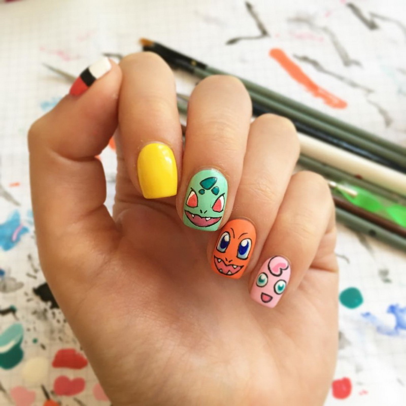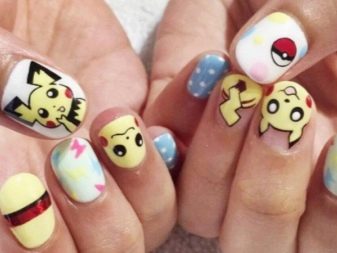 - Heroes of various animated films, comics often decorate the nails of young persons. Funny characters of cartoons about minions cheer up even very serious people. Fashion on the hunt for pokemon reflected on the nail design. Girls sometimes put them on their nails.