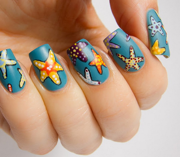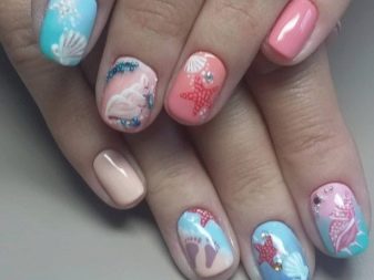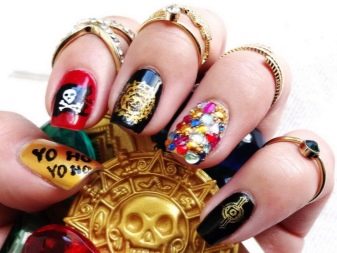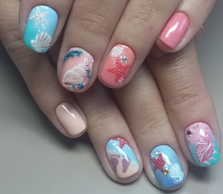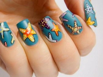 - Sea manicure can look fun and joking. A man looks forward to the upcoming vacation at sea, hoping for interesting adventures and vivid impressions. The swimsuits placed on each nail or decorating two fingers look cool. Teenagers are sometimes attracted to the pirate theme.