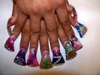 Creative people are experimenting in creating nail designs. They come up with extravagant pictures, put them on the nails. Funny and funny manicure attracts the attention of others, causing them to smile. Sometimes an unusual print shocks, challenges. Some girls are so addicted to too long nails, that sometimes their length can reach 50 mm. Despite the cheerful and even naughty design, such nails can lead people into a stupor.