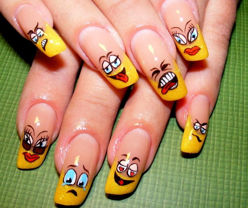 To learn how to perform a manicure with funny emoticons, see the next video.