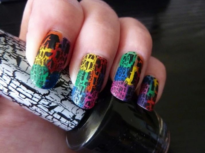 Craquelure technique is also used to create a fun manicure. There is a special varnish with a cracking effect. This print looks unusual and fun.
