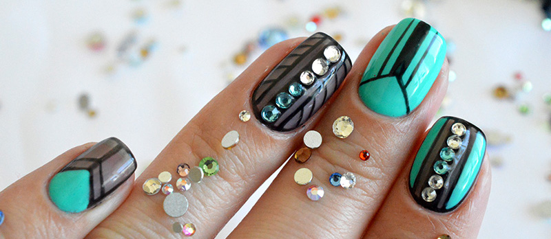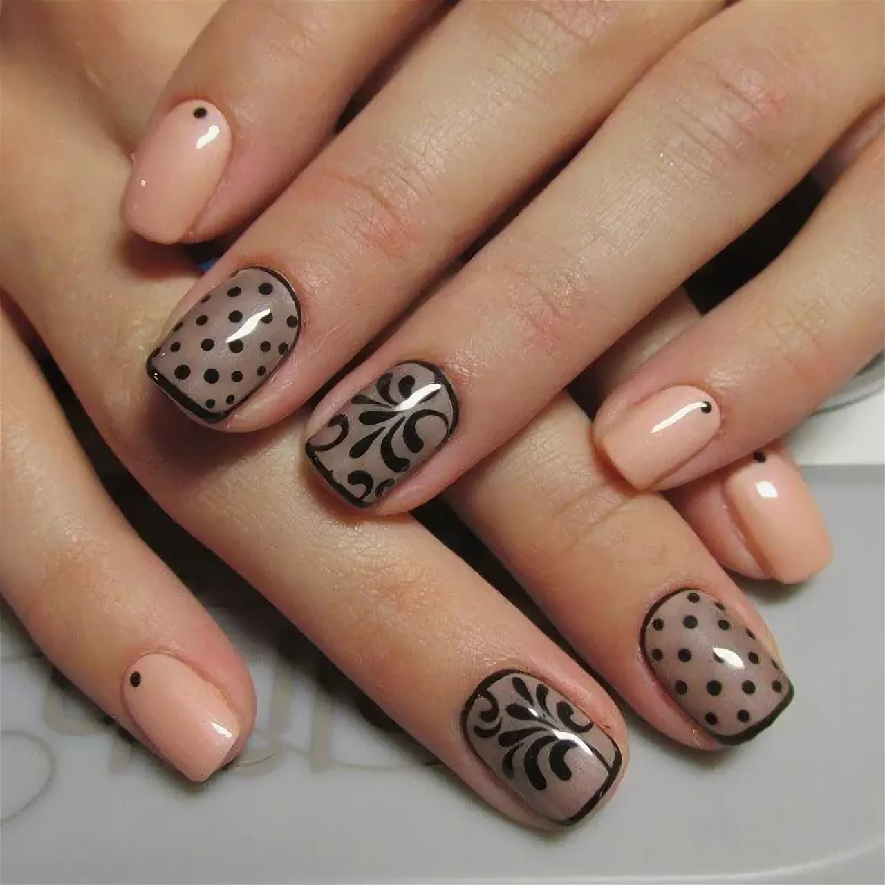 - After a stroke on the nail, put dots, draw a mesh, and complete the design as you see fit.