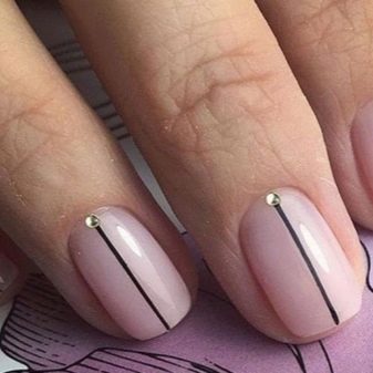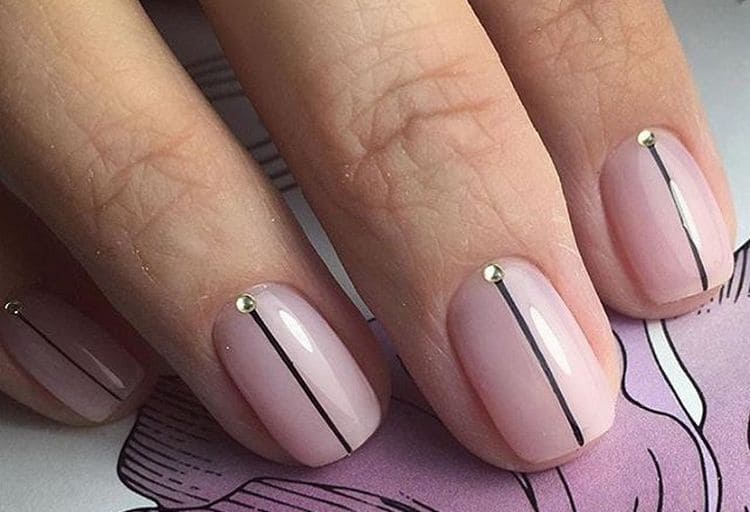 Neutral body tones are not only in trend, but also visually capable of giving grace to your fingers. Such an elegant, sophisticated design is appropriate in almost any situation. Stylish, concise choice for real ladies - minimalist design. Thin lines, vertical dots, will work well for lengthening.