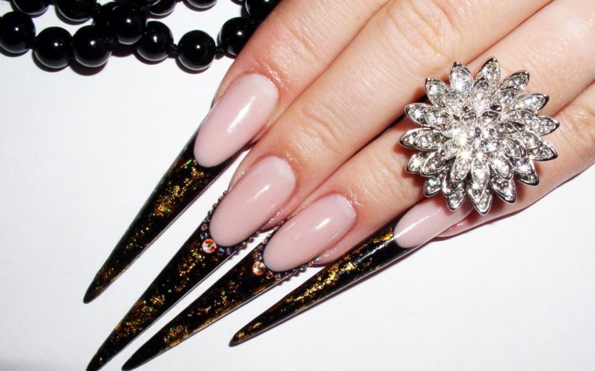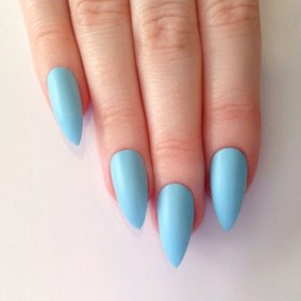 - Almonds and stylet can be afford, if the fingers are wide or short. These options will allow you to stretch the shortcomings of the short nail bed, they visually ennoble such nails, and even the fingers themselves. They are good because with a sufficient length, even trapezoidal side walls will look almost smooth. However, there is in this case and one significant drawback: pointed and long nails are characterized by increased fragility.
