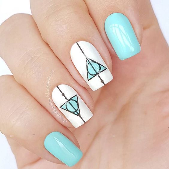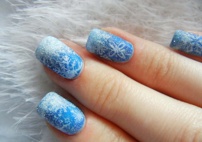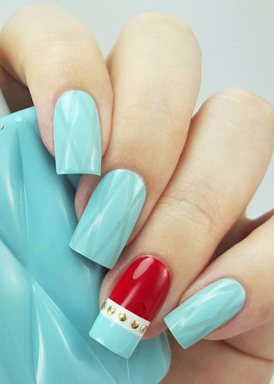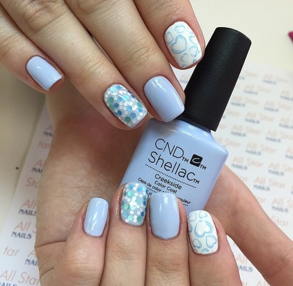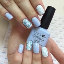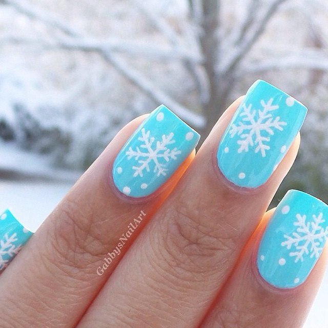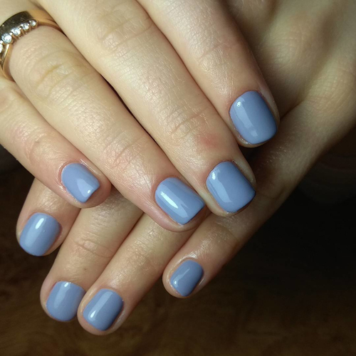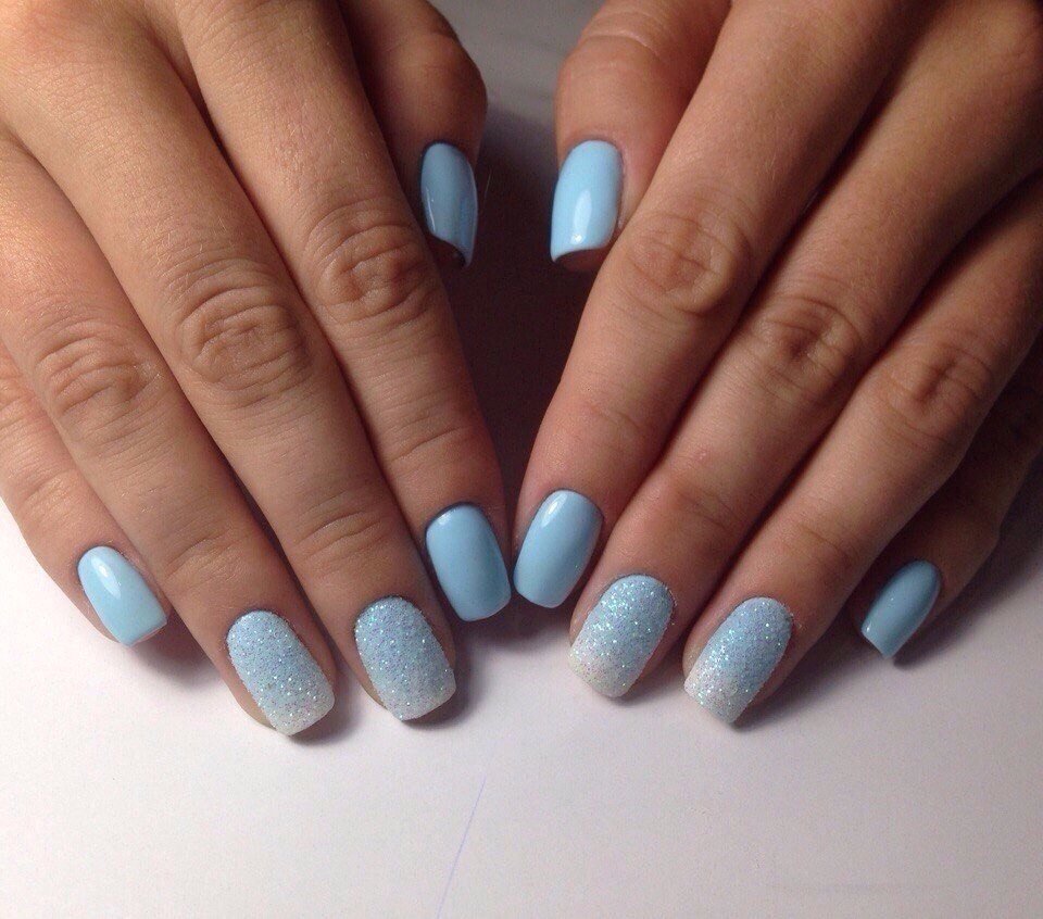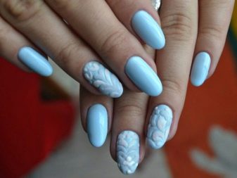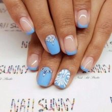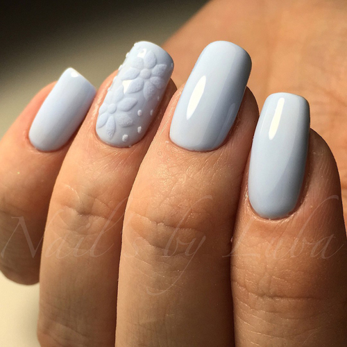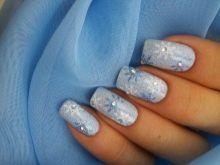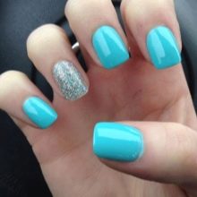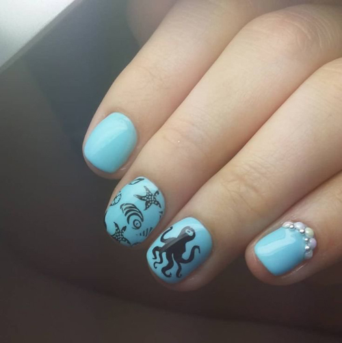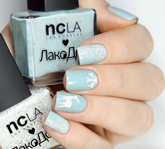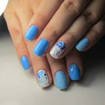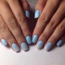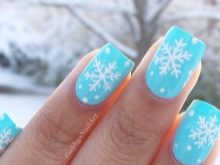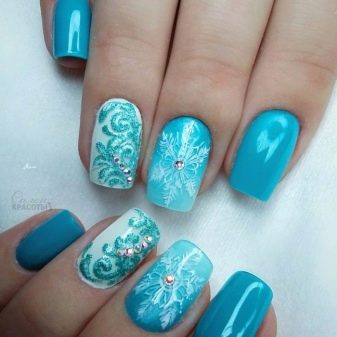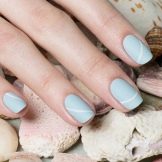 An interesting fact is that with the change of seasons the tones of blue will change. For example, a summer manicure needs gentle heavenly shades and white contrast. However, if the summer shades of blue are warmer, the winter is characterized by cold. The same blue gel polish, but with a mixture of blue with a pattern of snowflakes will look different on the nails.