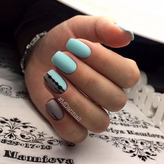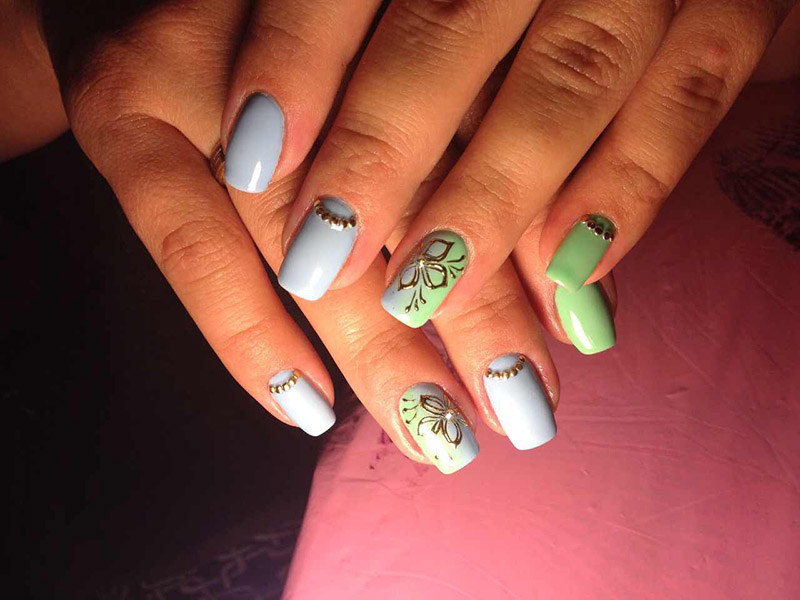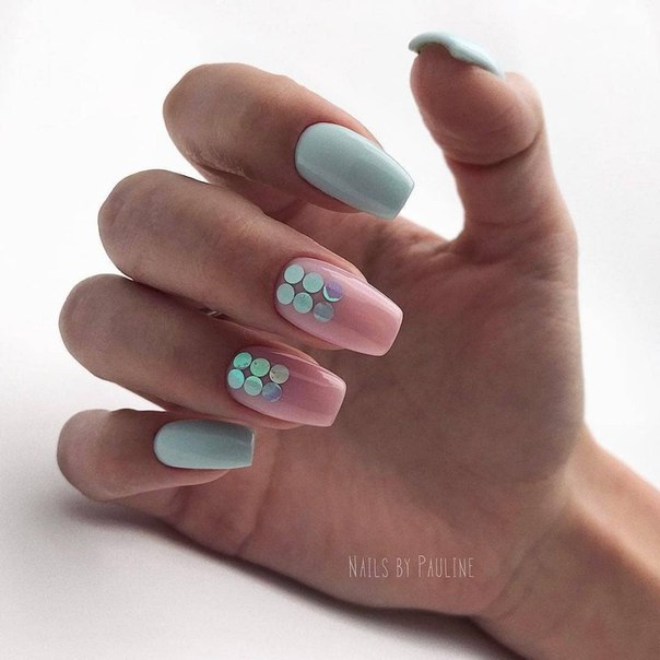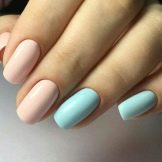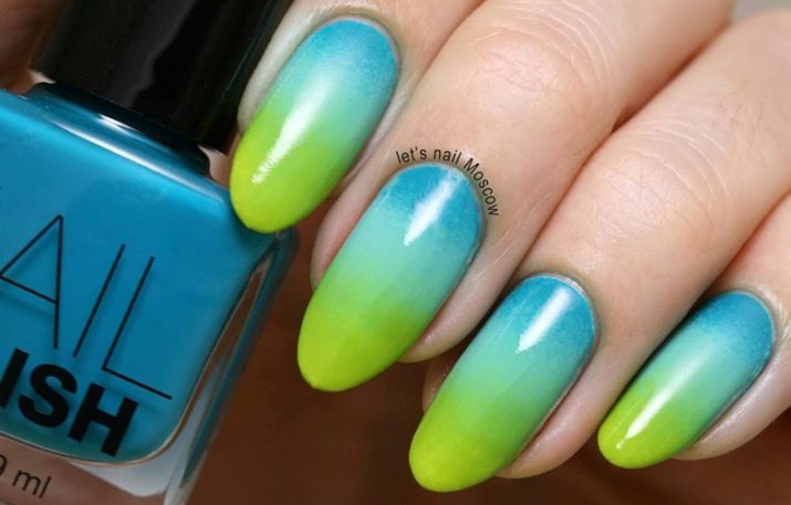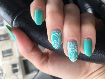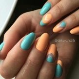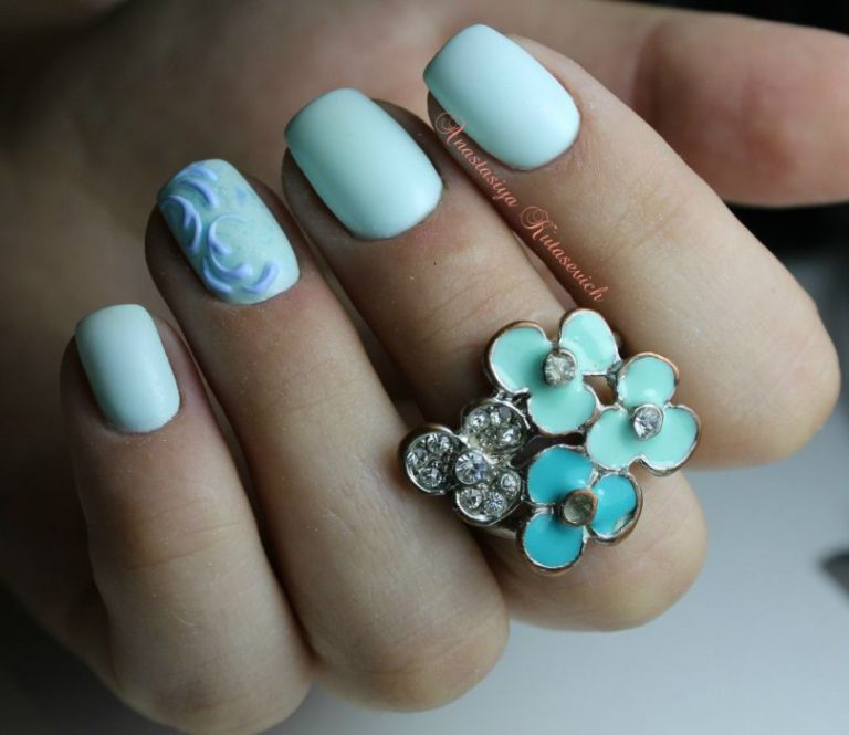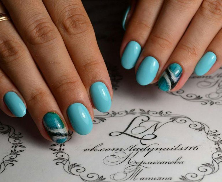 For example, in no case can you decorate blue with a poisonous green pattern: the color of the green lacquer should be muted and pleasant. If the colors are in harmony with each other, the same green-blue manicure will look fresh and beautiful. Combinations with blood-red, neon tones, as well as mixes of different shades of blue temperature are unacceptable. This approach to the design of a manicure deprives him of tenderness and femininity.
