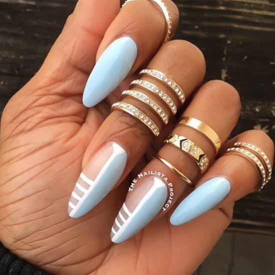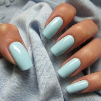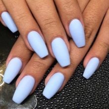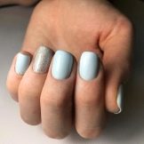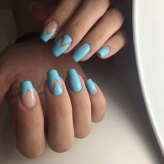 This season offers women to determine their priorities, choosing the best form for their nails. However, no matter how beautiful the shape may seem sharp, such a manicure looks aggressive. Not always, it allows you to harmoniously complete the gentle female image, given the tenderness of the blue color. Stylists pay attention to the fact that nails of different lengths and shapes are unacceptable: all nail plates should be visually the same.