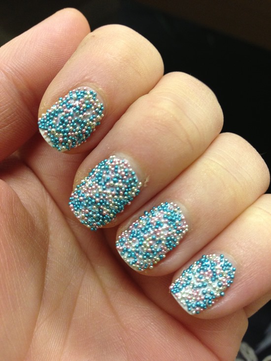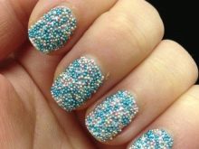 This substance is nothing more than microscopic beads. They are decorated with the surface of the nail plates, giving them the volume and relying on the unusual texture. Broths are applied to the layer of top coating before it is dried under a special lamp.After the decor is decorated, it is brought under a UV lamp and dried for the required time (the duration depends on the type of product used and the type of lamp itself). They are also used as decoration elements, creating wavy lines from them, branches of plants and even flower petals.
