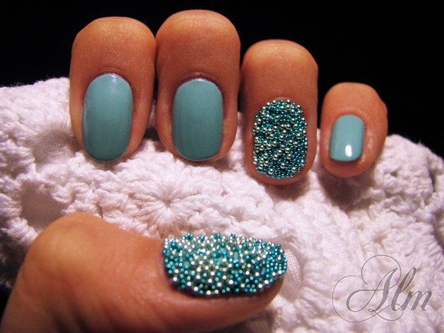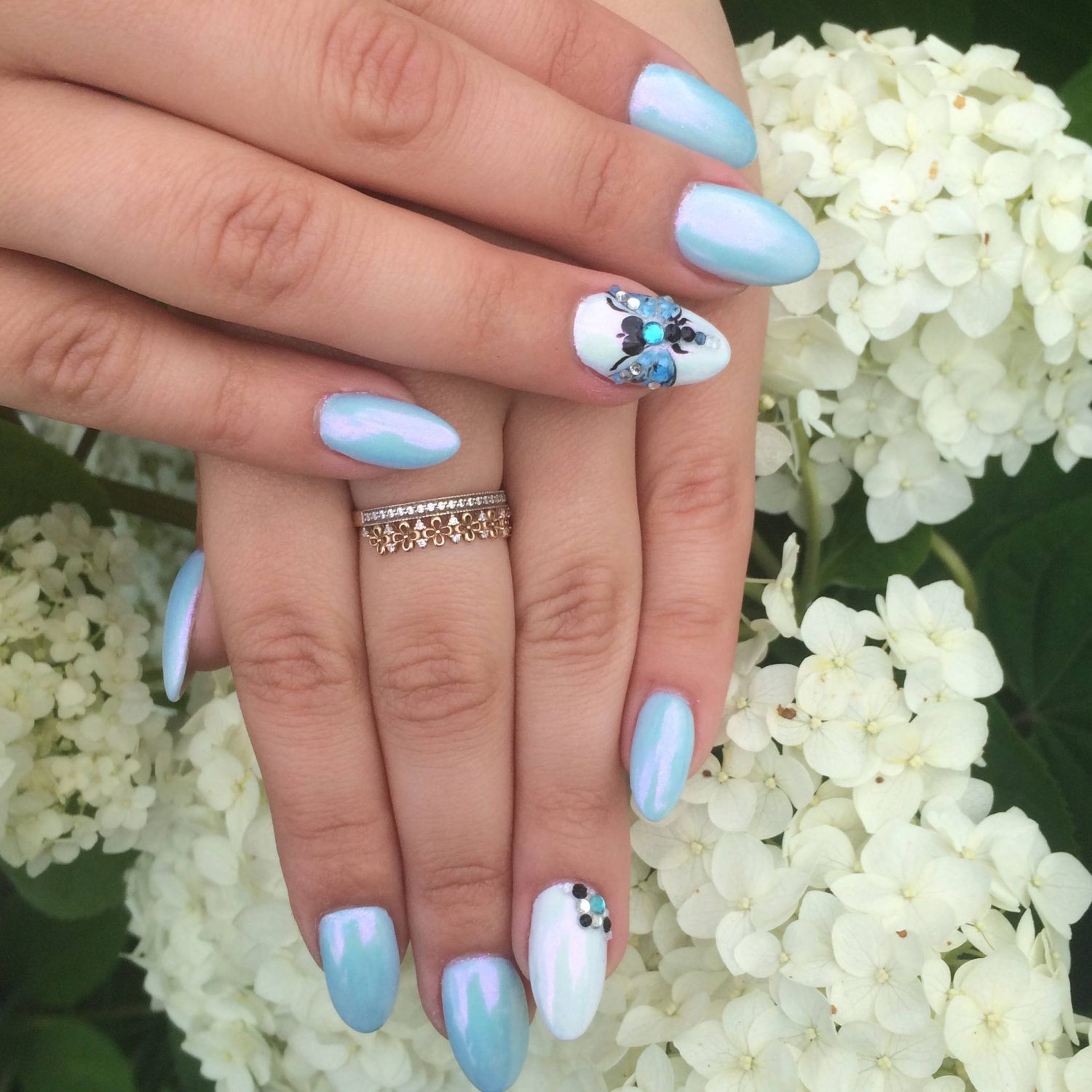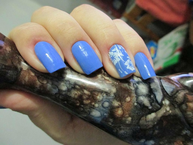 The convenience of this design is the ability to combine the available pigments, their application to different shades of blue lacquer in order to obtain new effects and tones. Pigments can be: