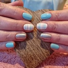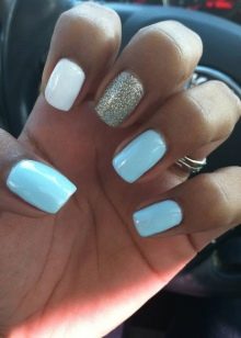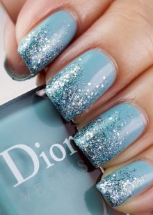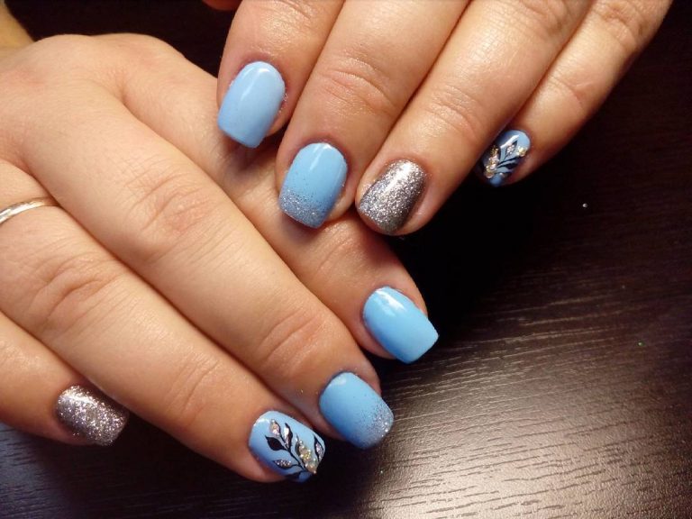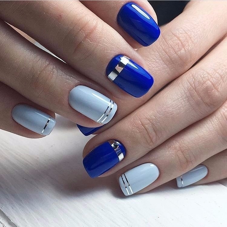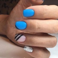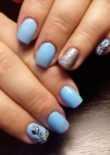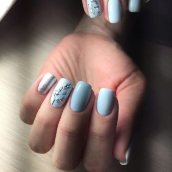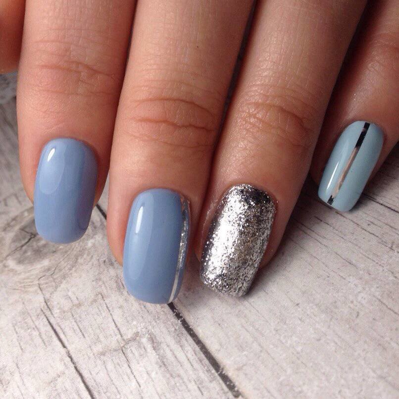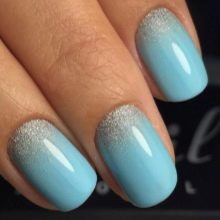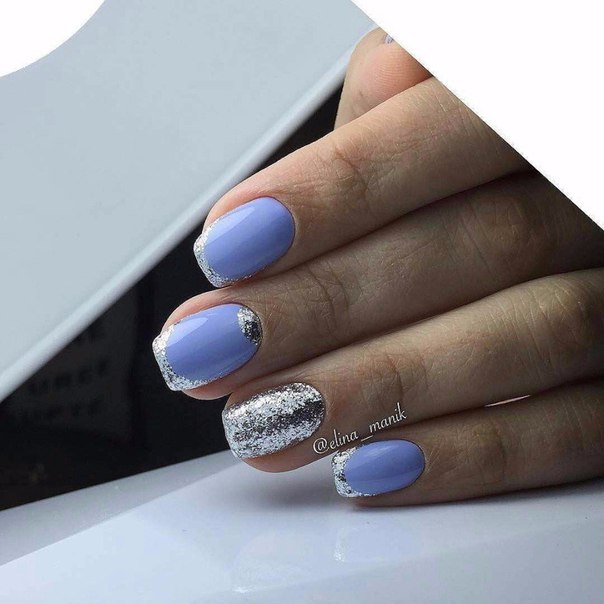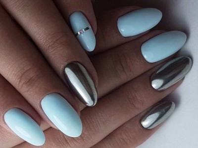 As for the blue manicure with silver, it is a sign of refined taste. In this embodiment, you can combine different techniques and styles of performance. Thanks to the many shades of blue, you can easily choose the right one. In addition, it is combined with almost any way; you just need to add a small silver accessory: a watch, a bracelet, a chain. That is why the combination of blue and silver will suit active girls who can not change the design of nails several times a day, depending on the event.