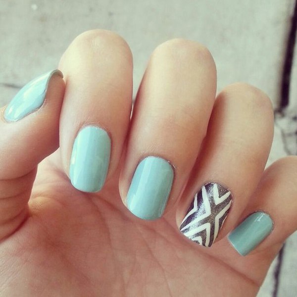 Turquoise and heavenly shades are great for the warm season. They add freshness to the image of early spring and hot summer. The gloss coating is almost transparent and airy. In addition, turquoise brings marine design motifs, which during the summer holiday will be very useful. This shade creates an amazing impression if there are thin black streaks in the manicure.