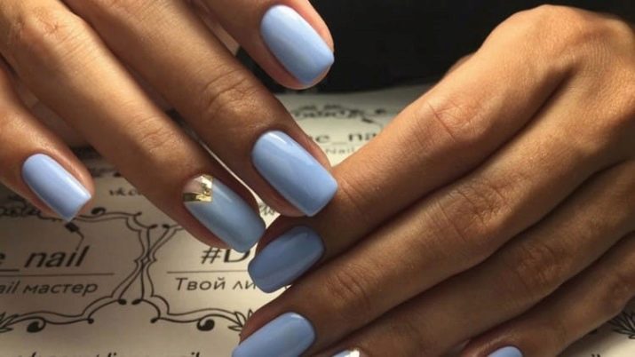 Blue manicure looks very impressive and at the same time calm and inconspicuous. This option is in perfect harmony with any style of clothing. Gentle blue tone helps many fashionable women to make more feminine and daytime, and evening bow.
