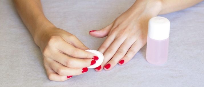 - You need to remove varnish with special liquids in compliance with the rules of working with them and holding the right time. It is recommended to remove a simple varnish with a liquid without acetone content.