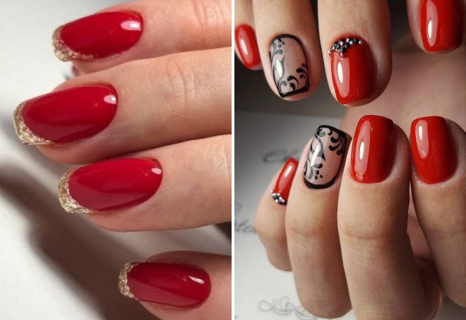 - Black and red finish - the most classic of all. Suitable for nail plate of any shape and length. Easier to tolerate coverage flaws and gradients. It looks festive and very elegant, so it may not be suitable for everyday wear.