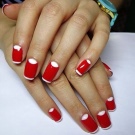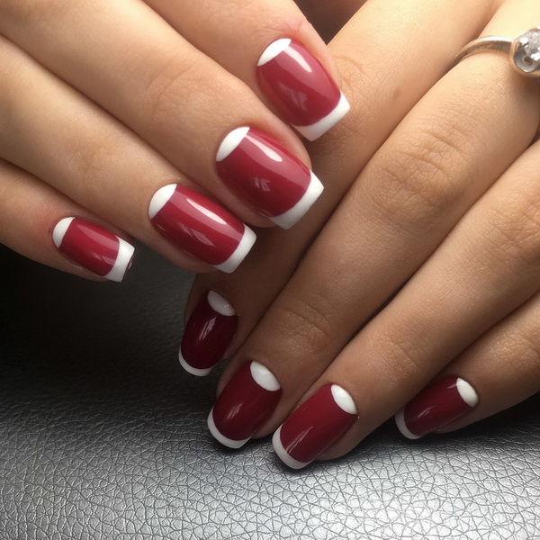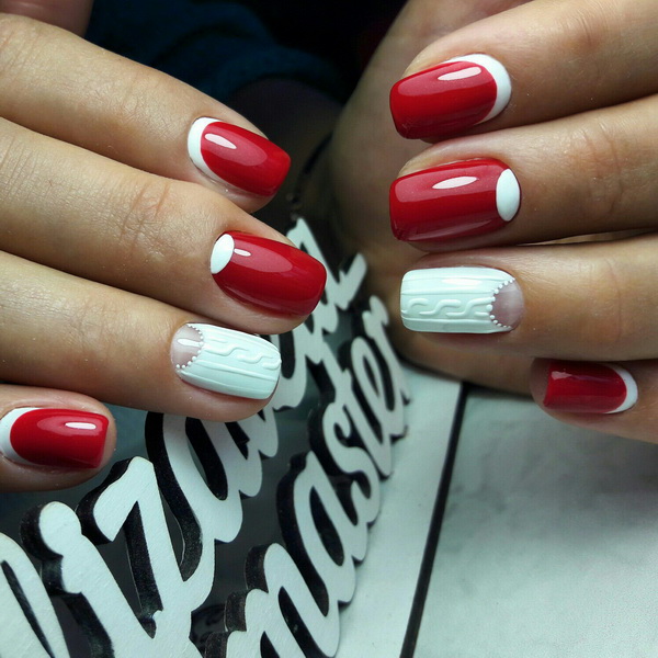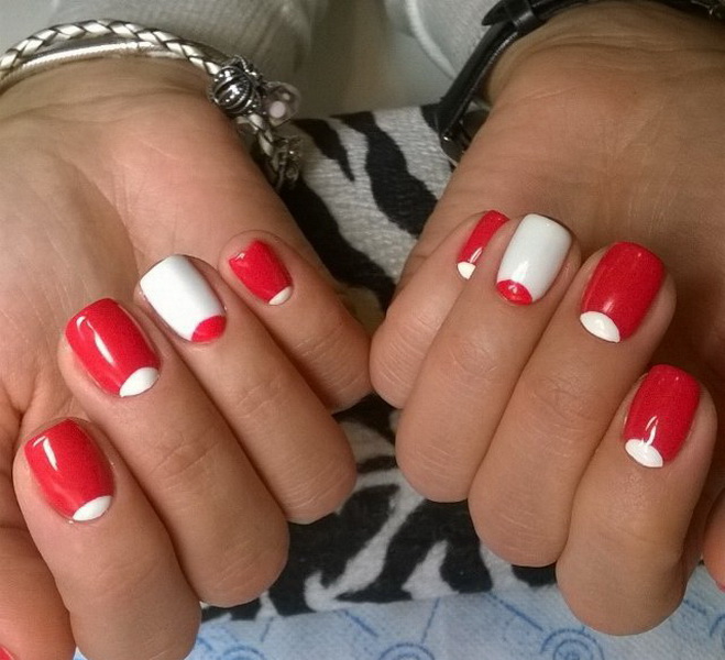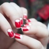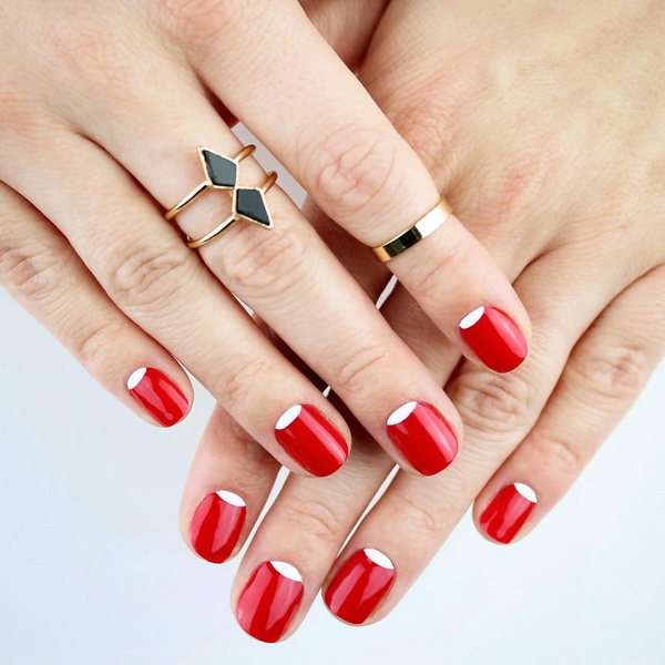 However, the version of the red manicure with white holes, a spectacular combination of two basic colors, became truly and interesting. If you carefully examine your nails, you can see at the line of their growth a kind of “hole” - a semicircular area that differs from the rest of the nail in color, usually it is lighter. Designers, inspired by natural beauty and naturalness, decided to inject this element into a manicure, repeating the image of a natural nail.