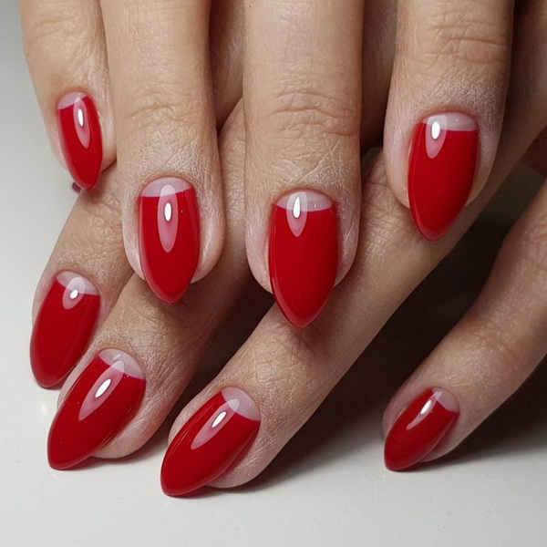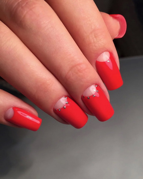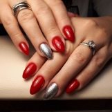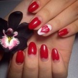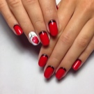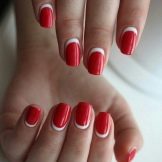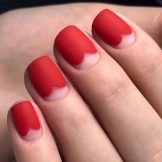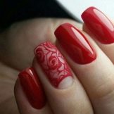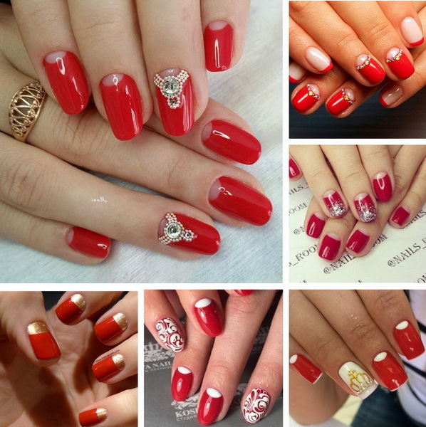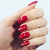 - Red manicure is suitable for any shape of the nail and the length of the finger. However, it is very important to monitor the well-being of the cuticle, to moisten it, as the red color attracts much attention to the nail.