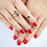 - Do not wear red manicure and jewelry at the same time, as your hands will look too overloaded. Nail design with red color itself is quite bright and will be advantageous to stand out.