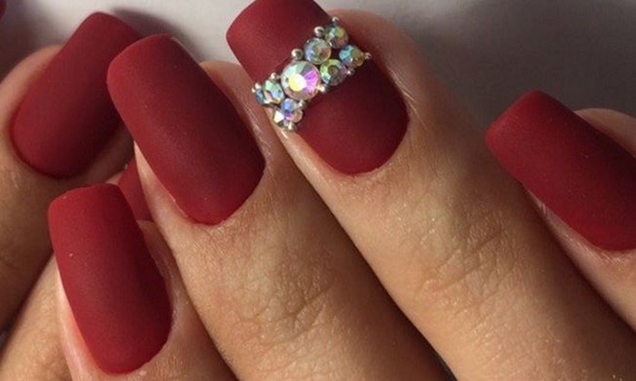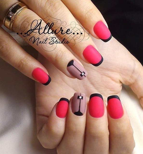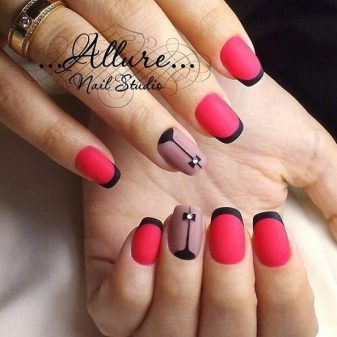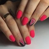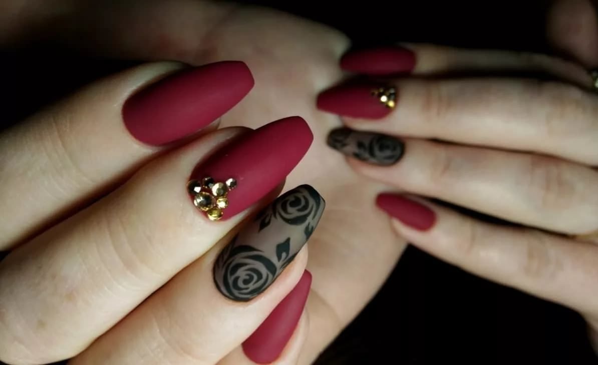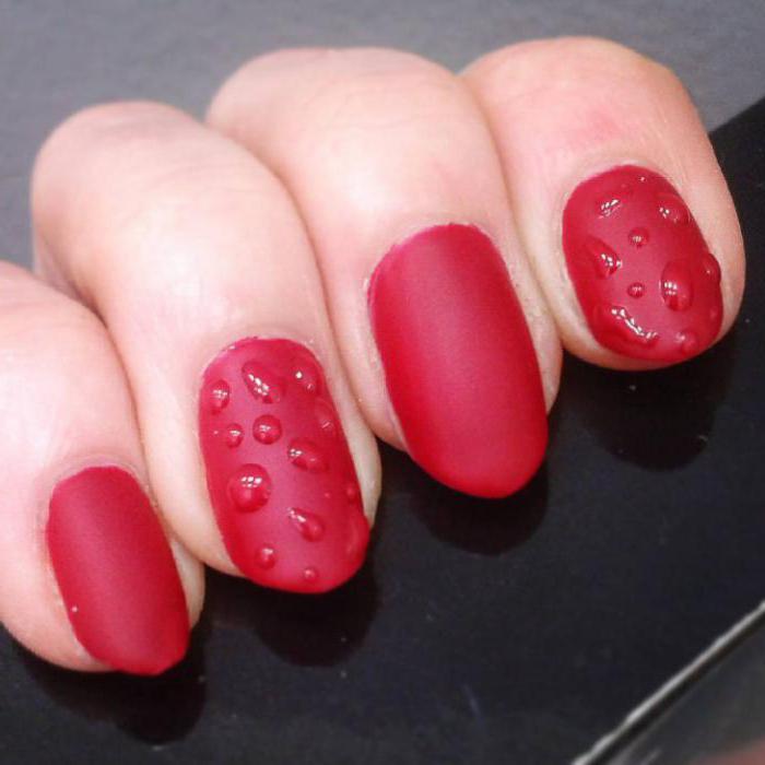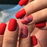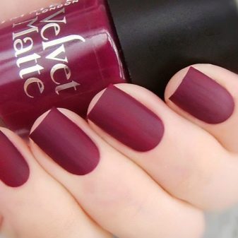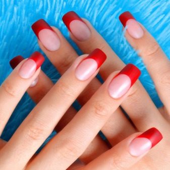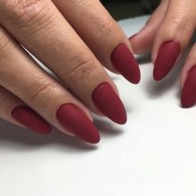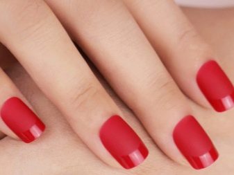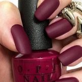 One of the most common is red matte manicure. Its color emphasizes the romance and passion of female nature. So, the younger female representatives prefer more delicate shades of this color, using a pink or crimson hue. Older women prefer to decorate their marigolds with dark shades of varnish, for example, with burgundy or bright cherry color. Both those and others look great on the nails.