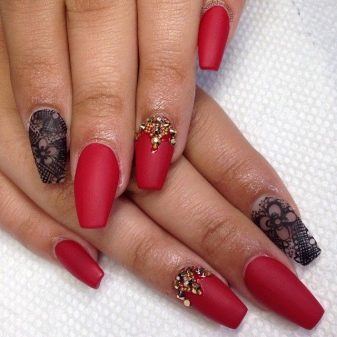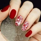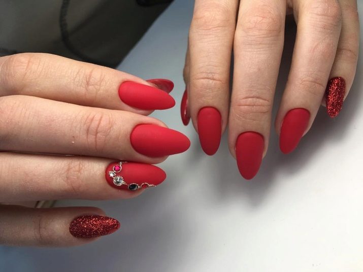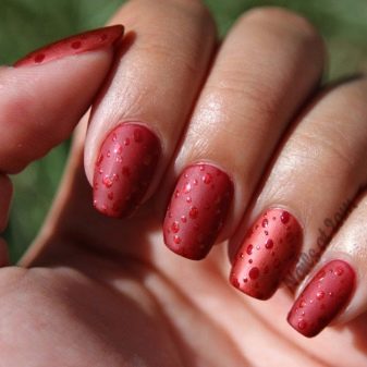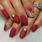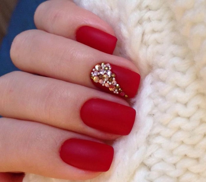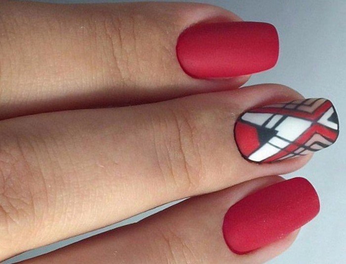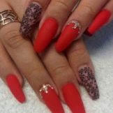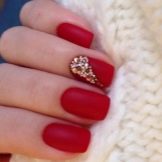 As you can see, there are more and more ideas for creating a red matte manicure every year.Everyone can definitely find something interesting for themselves. Pleases and the fact that you can make a matte finish and in the salons, and at home. That is, it is not always necessary to sign up for a manicure, if there is no time for it.