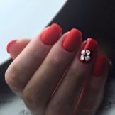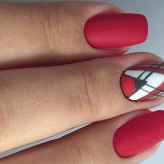 In addition, the red manicure allows you to emphasize not only the brightness, but also the originality of any woman. Since the color palette is quite diverse, you can experiment with shades and color combinations. Red matte manicure can be applied as the main color, and combined with other shades. The most popular combination is white and red. However, it will look beautiful with gold or black colors.