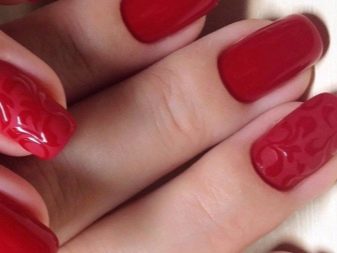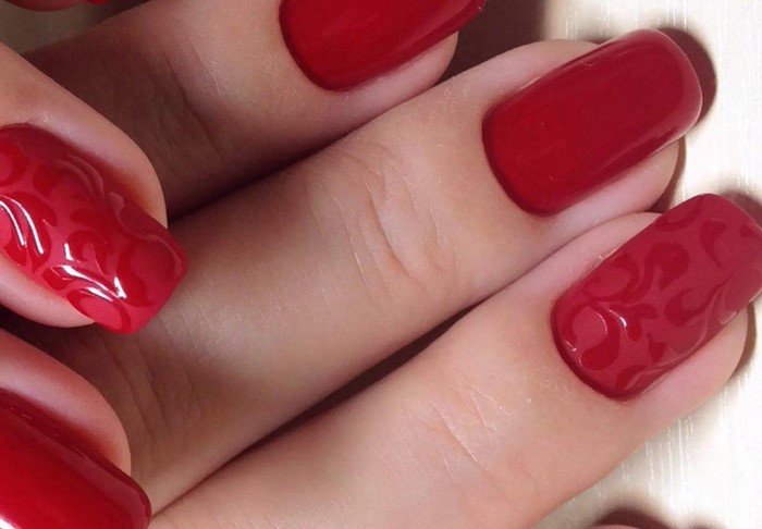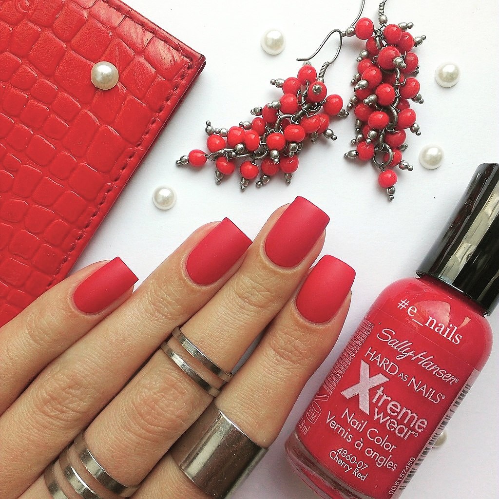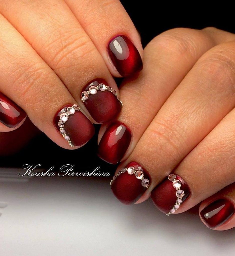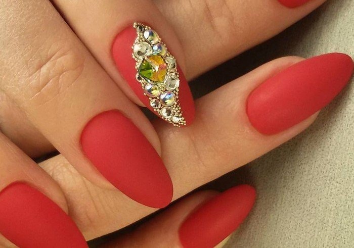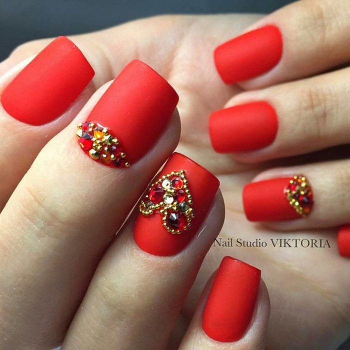 Matte red color can be applied, going on a romantic date. This will emphasize the mood of the girl and add zest to her image. For business meetings, it is better to choose not so bright shades that they match the office dress code. They can be supplemented with white or gold tint.
