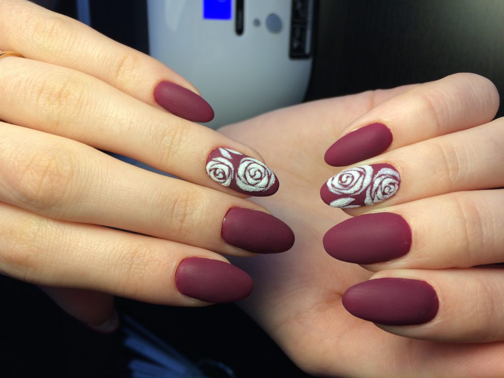 Beautiful drawings on the nails will give a matte manicure originality. However, it is worth remembering that it is necessary to select the color of the varnish in accordance with the coming season.