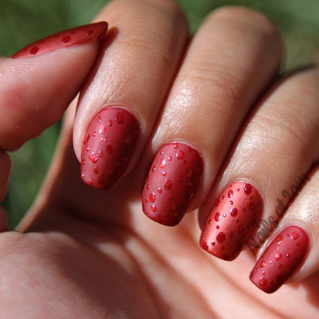 - Matte coating with droplets creates the impression of rain frozen on the nails.