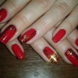 As for the color palette, there are almost no borders for a red manicure. The main thing is to choose the style of clothing in advance and select the necessary accessories. For short nails manicure color can be very diverse. Any shade of red, even dark tones, will do. The main thing - to decorate. If the manicure is done at home, it is important to pre-treat the nails and give them the same shape, otherwise the flaws will be clearly expressed on the gentle female hands.