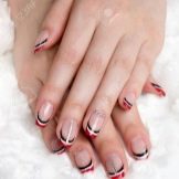 Special attention is paid to manicure nail design. Modern fashion treats the presence on the nails of various patterns, stickers, inserts in the form of stripes and various rhinestones.