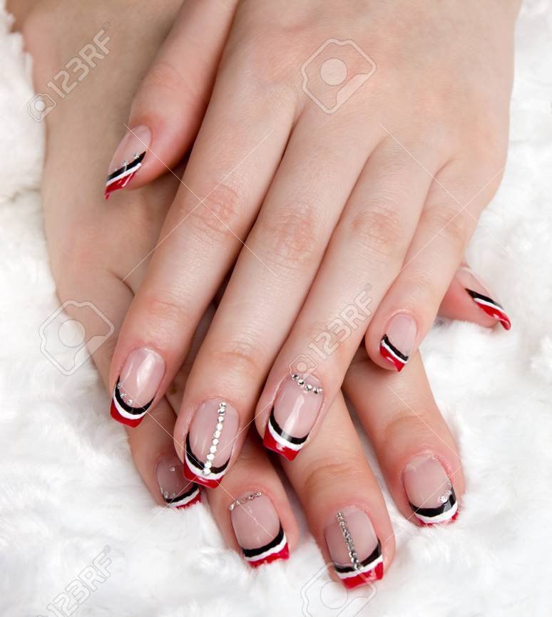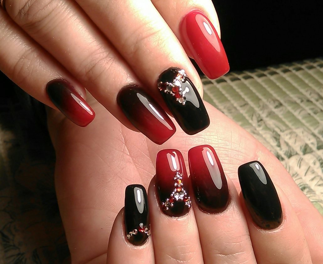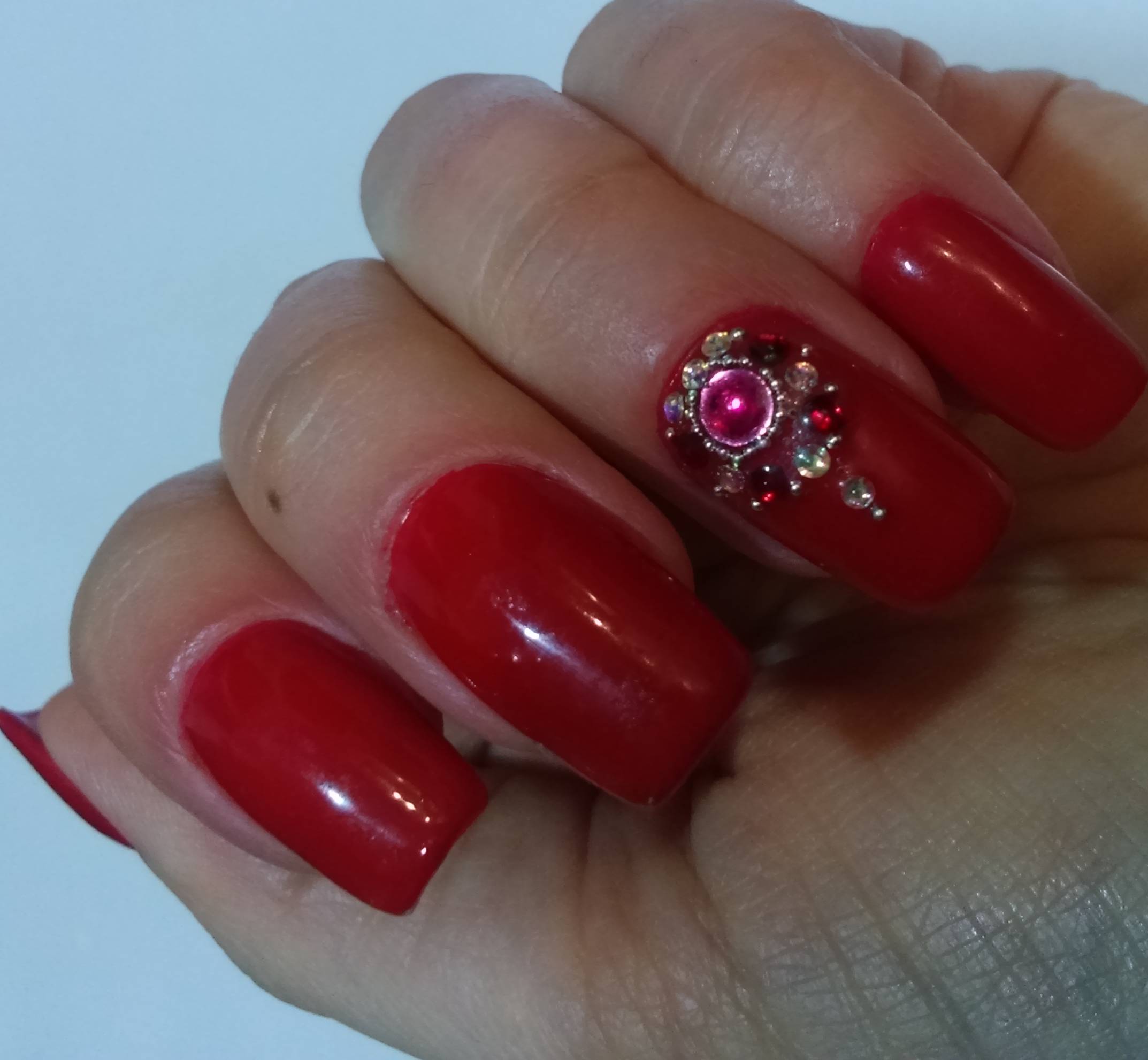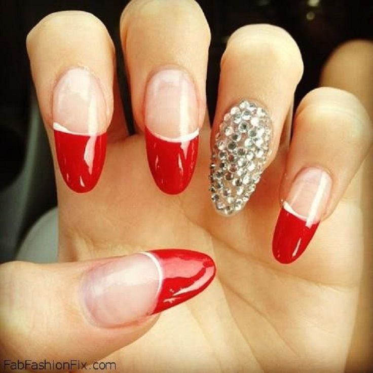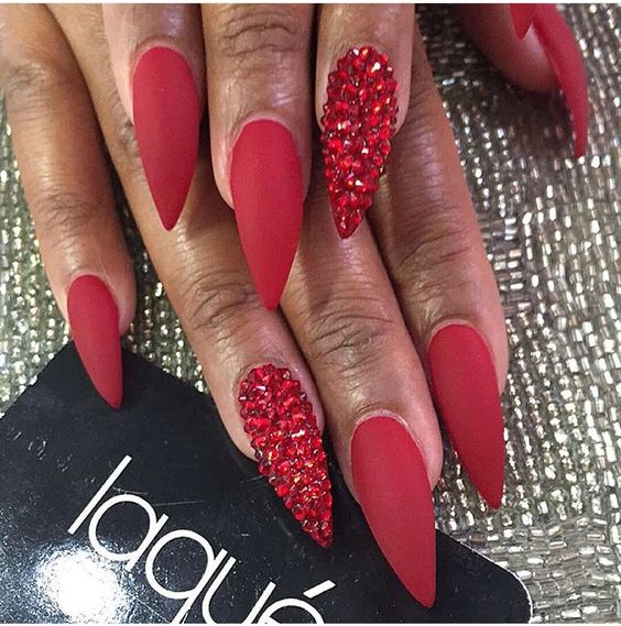 For red manicure, rhinestones sparkling and shimmering in the light are considered the most appropriate decoration. The main thing is to choose the right shade correctly so that the ready manicure looks charming.