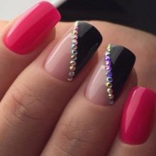 For the design fit and small pebbles, and products of large sizes. The main thing is to look harmoniously. If the length of the nails is decorated with stones of small sizes, then it would be nice to complement the design with curls of a different color, for example, white or black.
