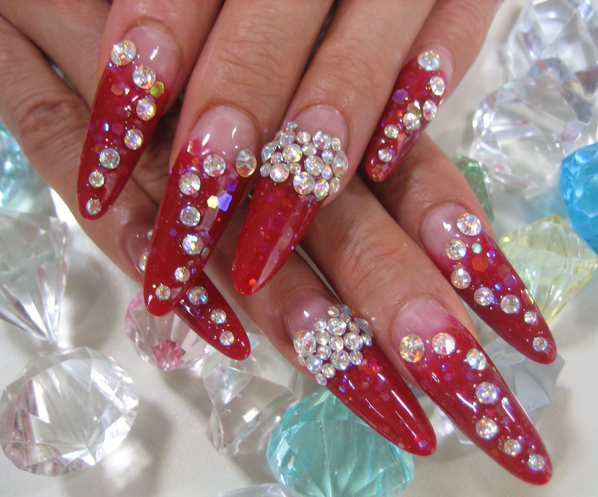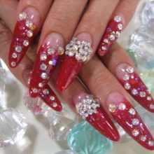 Owners of long nails in the choice of stones for decorating nails can fully unleash their imagination.