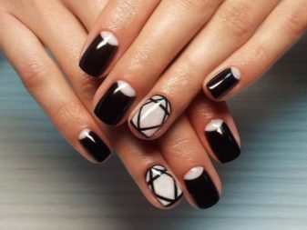 - Half design. The chip of this method is to leave part of the nail intact. The pigment is applied only on half of the plate and is decorated on request. The principle of longevity of such a manicure is the same as that of the moon - the beginning of the nail remains unpainted.