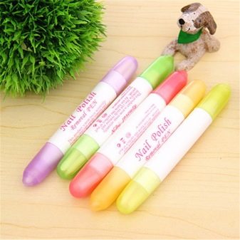 - Special correctors-markerswhich are sold in professional stores. The core of this corrector is saturated with varnish remover. With the help of such an assistant, you can immediately remove any miss.