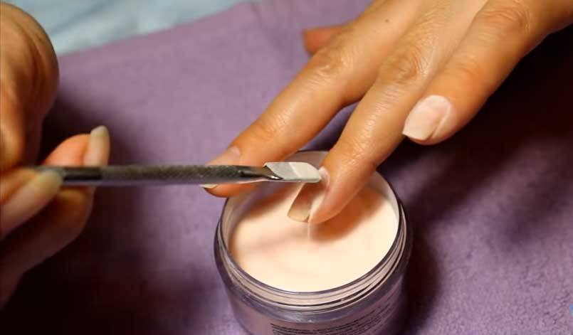- Be sure to adjust the shape of the plate.. The flat type of the nail is corrected with acrylic powder, wide - leaving thin loose stripes on the sides.
