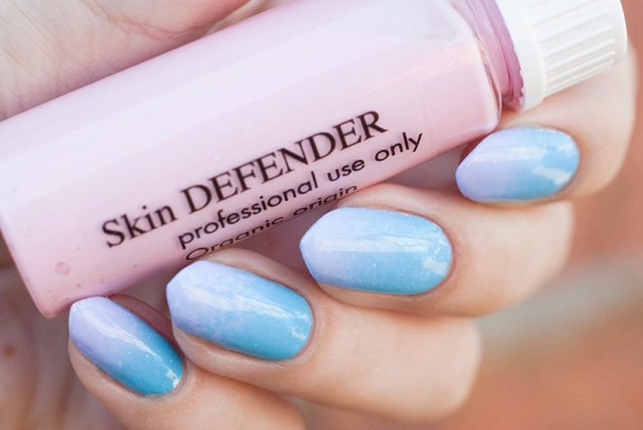 - Skin defender - This is a professional tool that is sufficient to apply to the skin and allow it to dry. The resulting film after the manicure is easily removed along with the varnish on it.