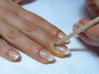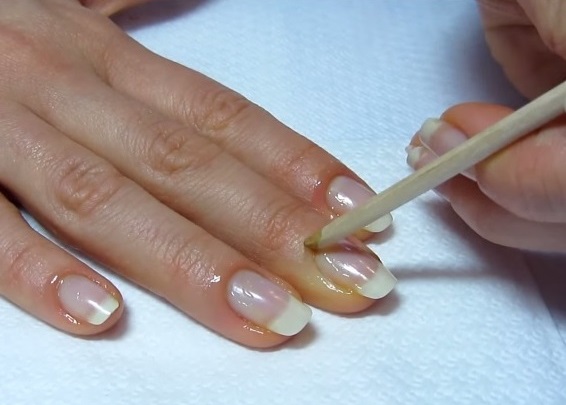 - In the process of work, it is not necessary to cut off the excess skin to the meat; it is enough to push the cuticle with a special stick after preliminary preparation of the skin.